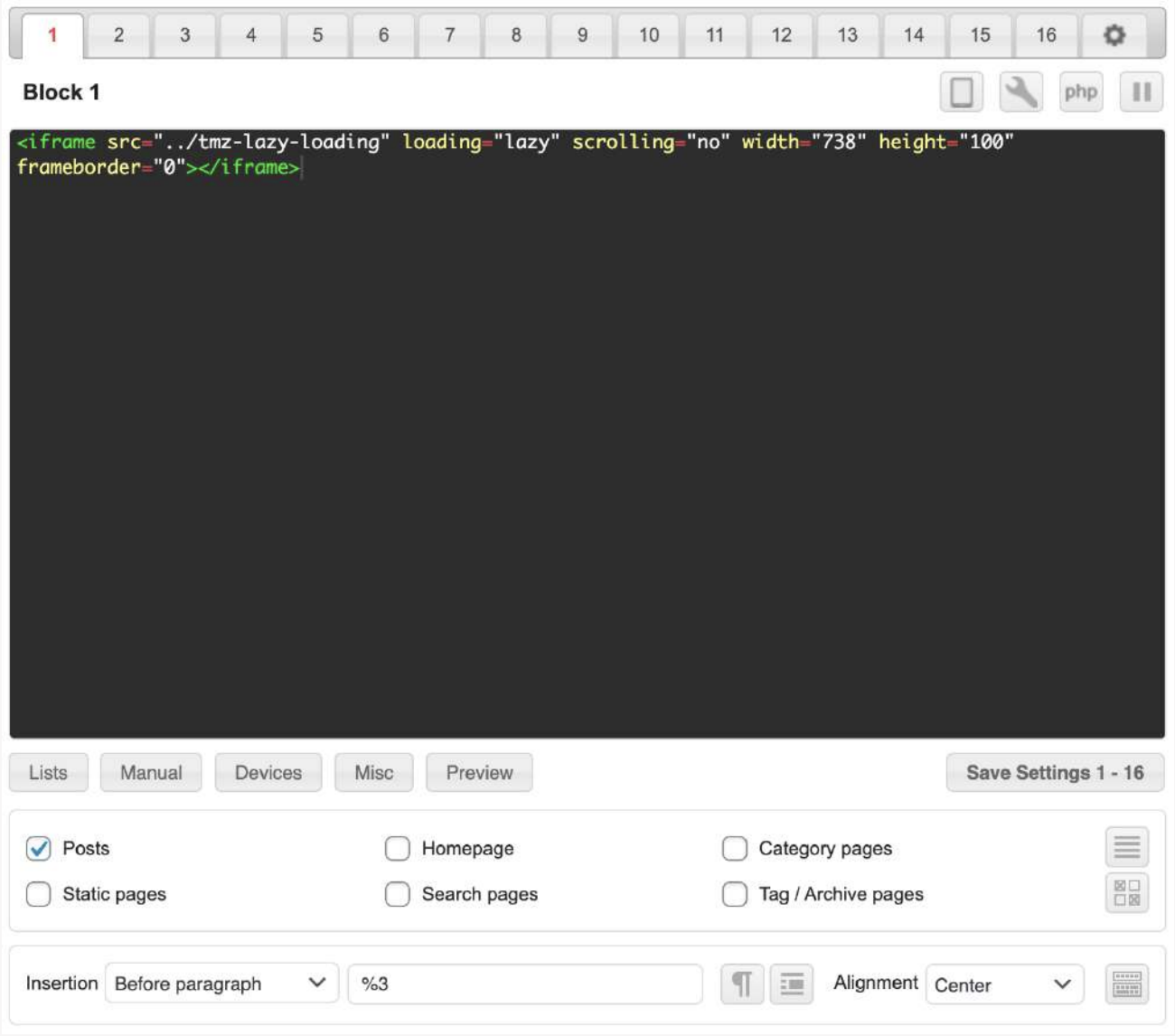 Lazy loading allows you to load pages faster, reduce resource consumption and contention, and improve the display rate by pausing the request and rendering of ads until they approach the user's window. This means that Lazy Loading consists of adding an ad tag asynchronously, every X paragraphs of your articles.
