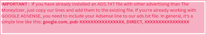 - To check that the file is installed correctly, simply type the following address in your browser: http(s)://www.nameofyoursite.com/ads.txt.