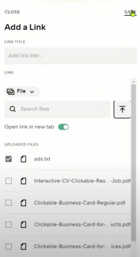 Toggle the file choice, ensuring you select “open in new tab” , and click save