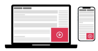 A non-intrusive outstream video player that appears anchored to the bottom-right corner of the screen. It captures user attention without interrupting the browsing experience.