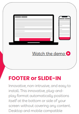 Footer / Slide-in: sticks to the edge of the screen without covering content.
